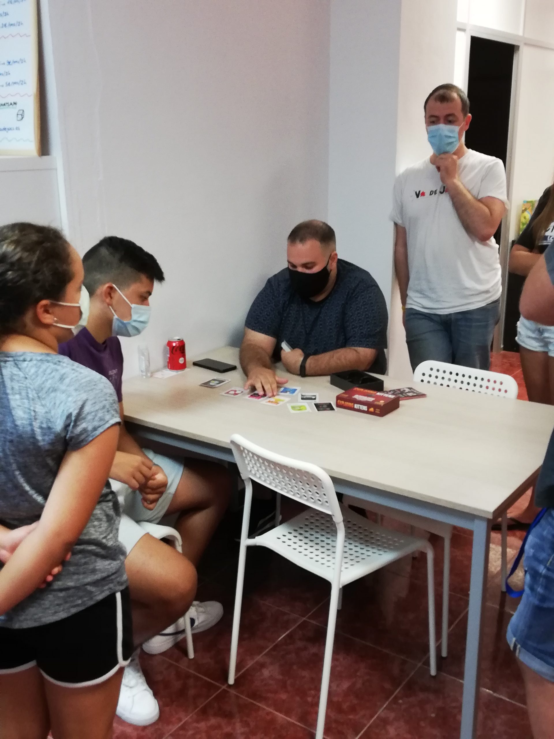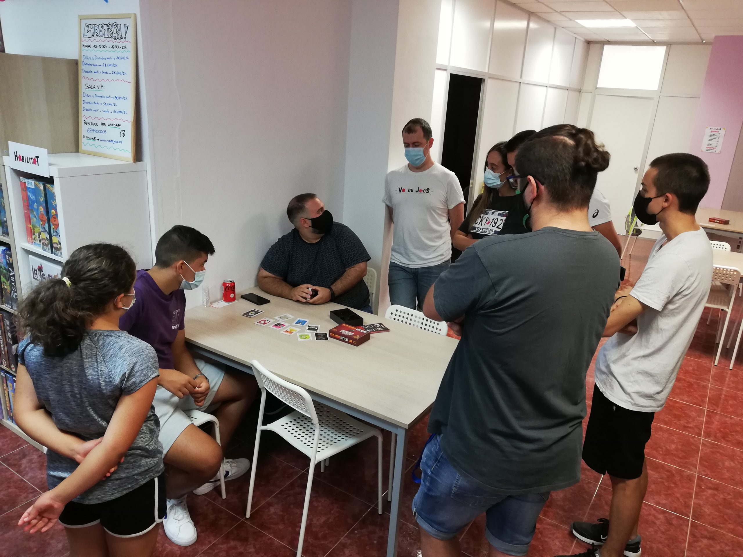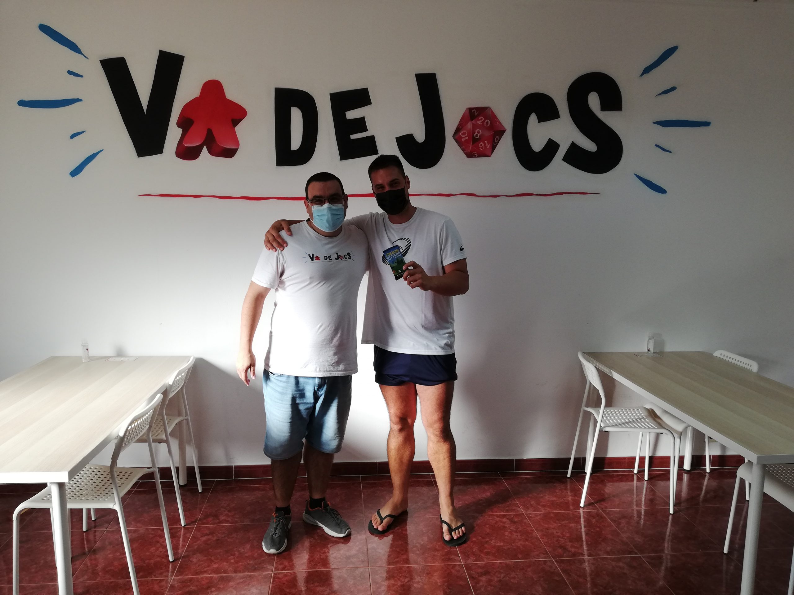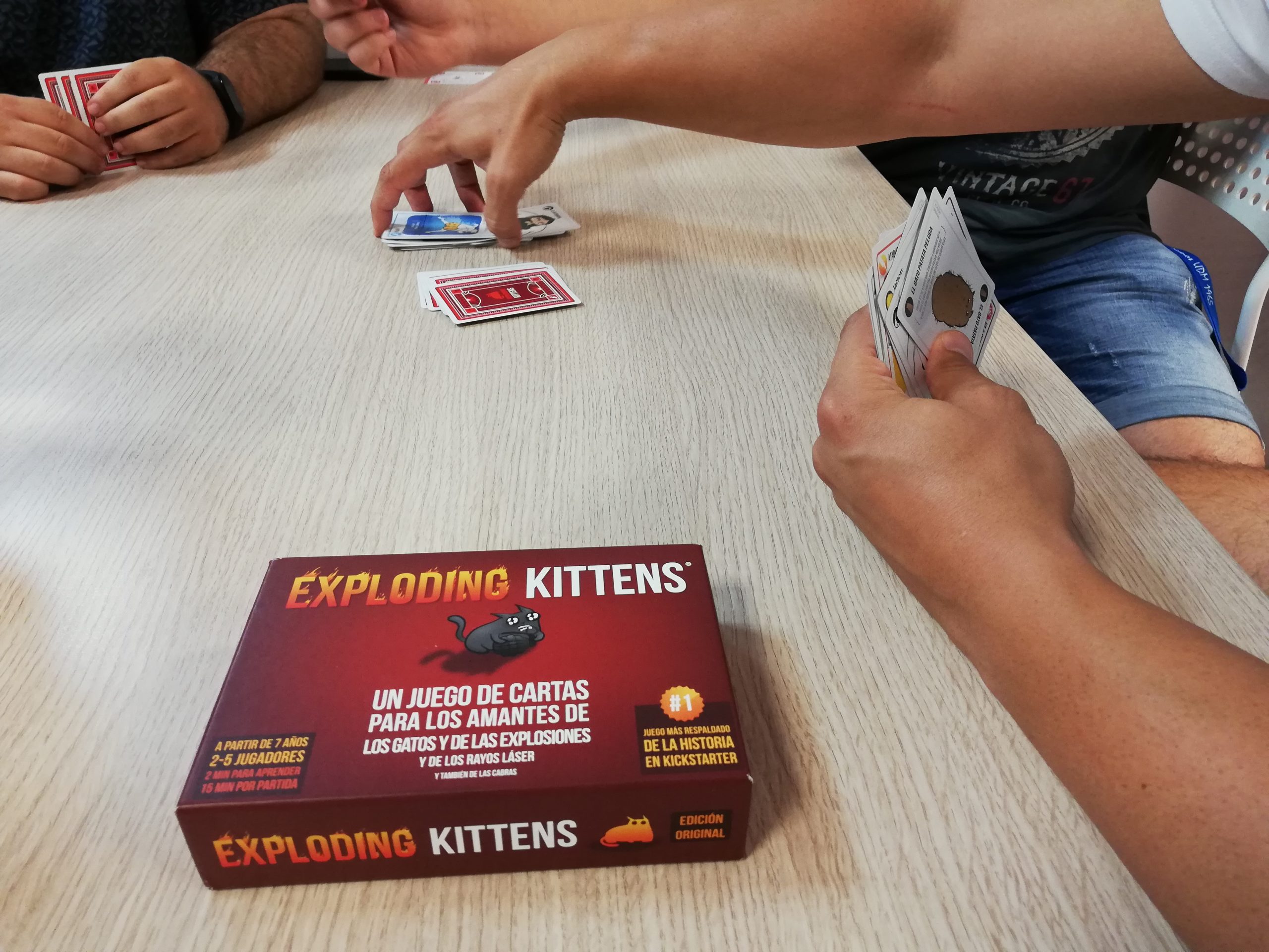 El passat dissabte 14 d’agost es va celebrar el I Torneig de Exploding Kittens dins de la programació #Vadestiu al Va de Jocs. L’Exploding Kittens es una versió gatuna de la ruleta de la russa però amb una mecànica de cartes. L’objectiu es assegurar la teva supervivència davant les temibles cartes de gats explosius (Exploding Kittens). Durant el teu torn podràs jugar totes les teves cartes i realitzar la millor estratègia però al finalitzar el torn, sempre hauràs de robar una carta. Si aquesta carta es un Exploding Kitten, immediatament quedes eliminat de la partida, a no ser que tinguis una carta de desactivació. En definitiva, un joc de cartes ràpid, fàcil d’entendre i molt divertit però amb un component estratègic però no quedar eliminat a la primera.